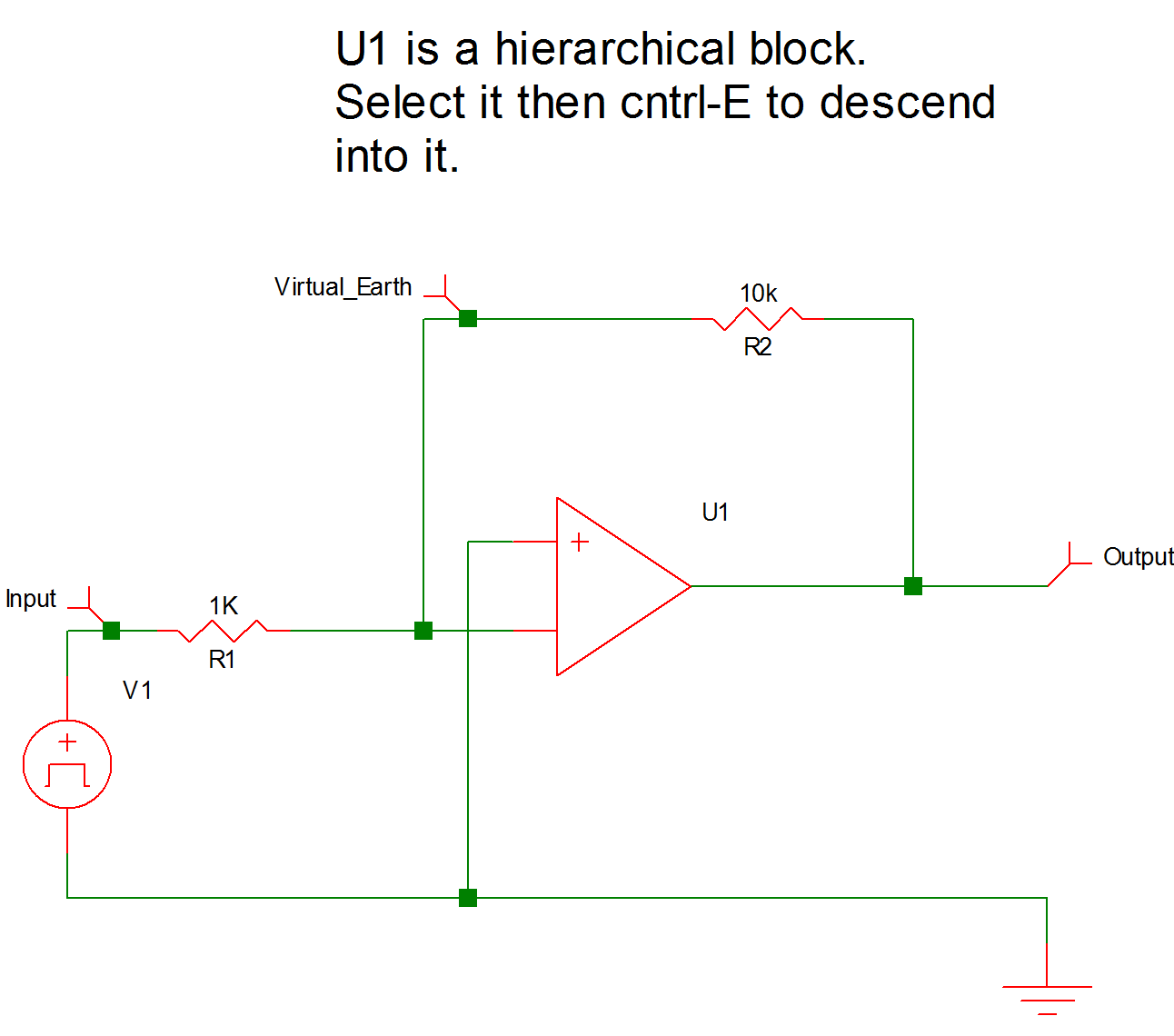 * Saturation of an Operational Amplifier .PRINT ALL .OPTIONS PSP_NPT=1001 .TRAN 2m 0 X$U1 2 0 1 opamp V1 3 0 SIN VOFFSET=0 APEAK=1 FREQ=1k TDELAY=0 + OFF_UNTIL_DELAY=NO DAMP_COEF=0 R1 1 3 1K R2 2 1 10k .SUBCKT opamp 3 4 2 .NODE_MAP VINN 2 .NODE_MAP VINP 4 .NODE_MAP VOUT 3 RIN 4 2 1Meg EOP 1 0 4 2 1Meg ROUT 3 1 50 !R$R1 3 0 R1$TP_SSPWLR IC=1 .MODEL R1$TP_SSPWLR VPWLR NSEG=3 X0=-5.1 Y0=-1MEG + X1=-5.0 Y1=-1U X2=5.0 Y2=1U X3=5.1 Y3=1MEG .ENDS opamp .END