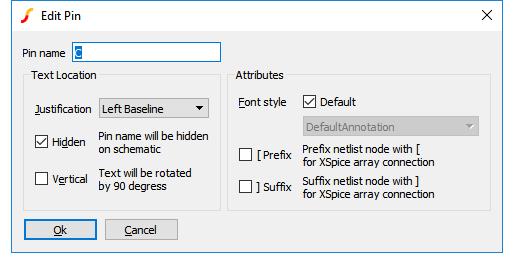 Font style Select font style to use for a visible pin name. There is a choice of 8 styles. Schematic fonts are explained in Fonts.