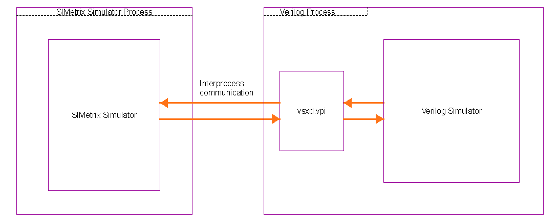 SIMetrix communicates with the Verilog simulator using the Verilog Procedural Interface or VPI. VPI allows an external program to communicate with a Verilog simulator.