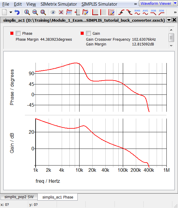 The Periodic Operating Point (POP) analysis is one of the most powerful capabilities of SIMPLIS. The POP analysis is a specialized transient analysis which quickly finds the switching steady-state operating point of a circuit. Once the steady-state operating point is found, an AC analysis at the periodic operating point can be performed on the circuit.