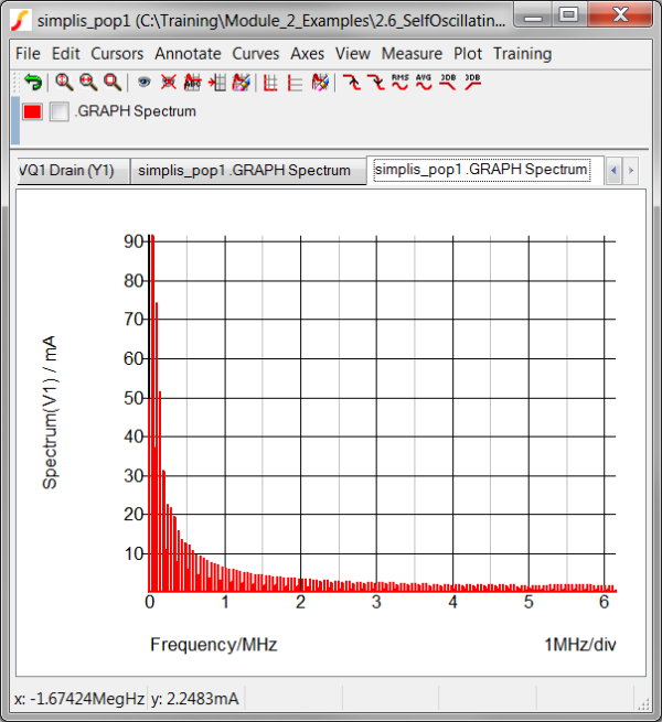 - In the waveform viewer, select the graph tab containing the spectrum curve.