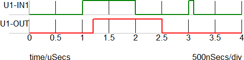 X$U1 2 1 SIMPLIS_DIGI1_D_ASYMMETRIC_DELAY_N vars: IC=0 RIN=10Meg ROUT=10 TH=2.5 HYSTWD=1.0