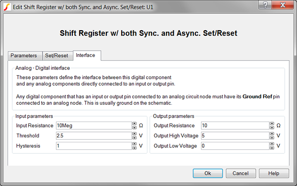1. From the Edit Shift Register with both Sync and Async Set/Reset dialog box, click on the Interface tab.