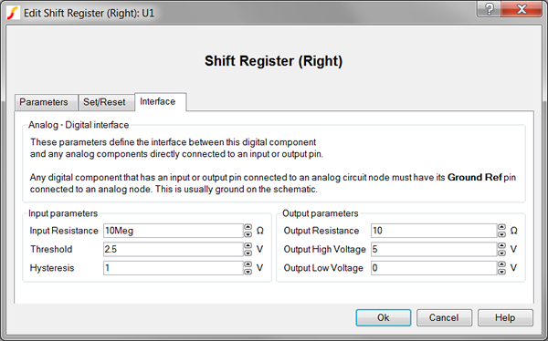 | Ground Ref | Determines whether or not a device has a ground reference pin. Any digital component that has an input or output pin connected to an analog circuit node must have its Ground Ref pin connected to an analog node. This is usually the ground on the schematic. |