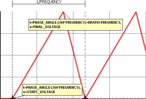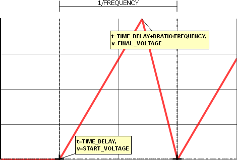 START_VOLTAGE 0 Real   V The valley or starting voltage for the triangle waveform source. This can be a numeric value or a symbolic value, such as a percentage of nominal input voltage.