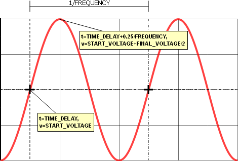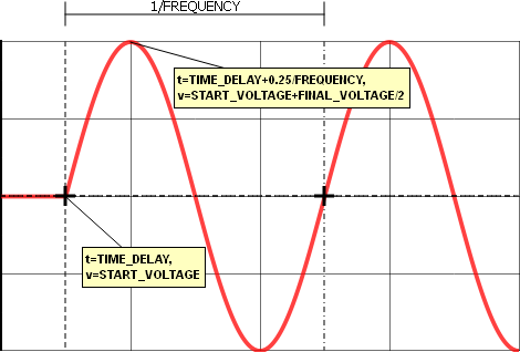 START_VOLTAGE 0 Real   V The minimum or starting voltage for the sine waveform source. This can be a numeric value or a symbolic value, such as a percentage of nominal input voltage.