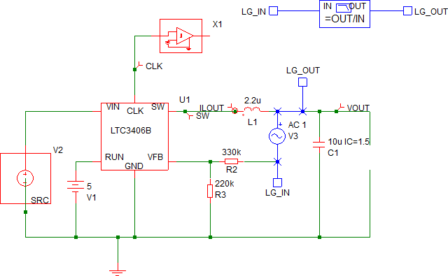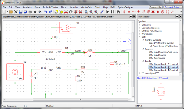 2. To open the schematic, double click the LTC3406B-AC-Bode Plot.sxsch file or drag that file into the SIMetrix/SIMPLIS Command Shell.