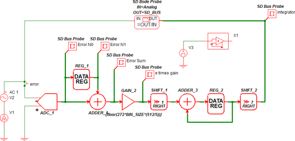 Note the quantization of the integrator output in the integer-type simulations:
