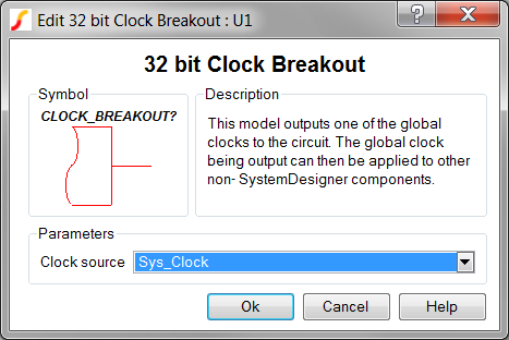 Specifies the global clock used for the Clock Breakout. The Clock can be set up using the SystemDesigner->Edit SystemDesigner Clocks... menu item or by placing a Start of Conversion Breakin.