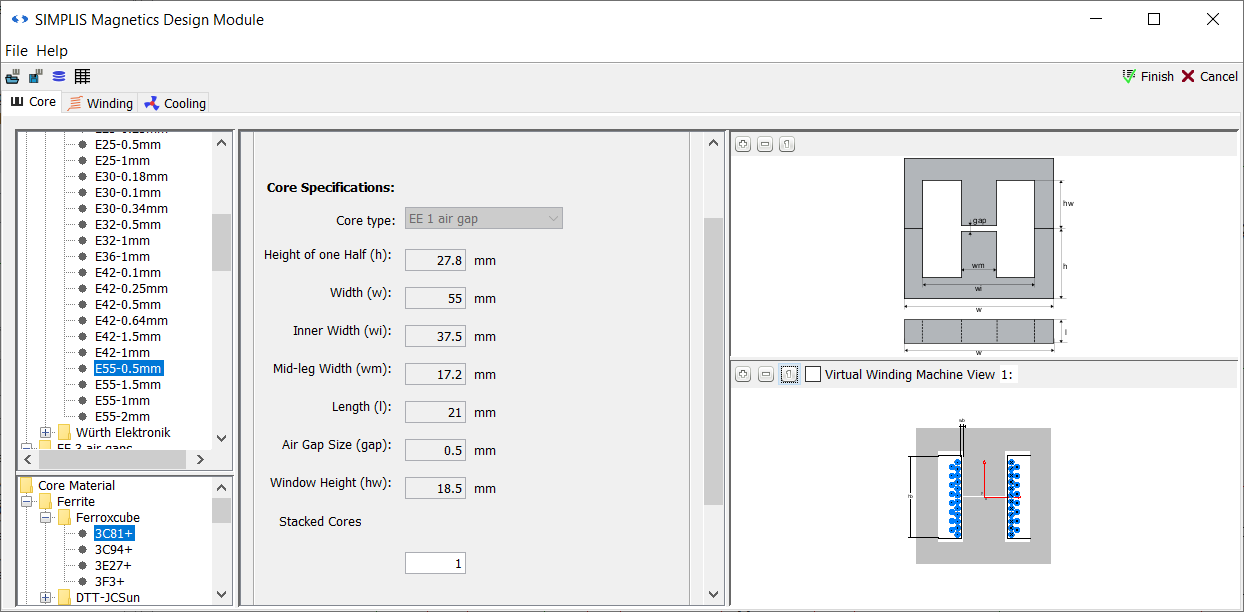To examine the inductor model, click on Edit with SIMPLIS MDM....