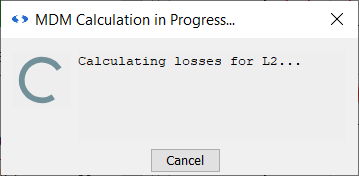 Press F9 to run the simulation. You will notice that MDM post-processing takes significantly longer than it took with the Buck converter. The pop-up dialog showing that MDM post-processing is in progress, may, depending on the speed of your machine, be displayed for about a minute: