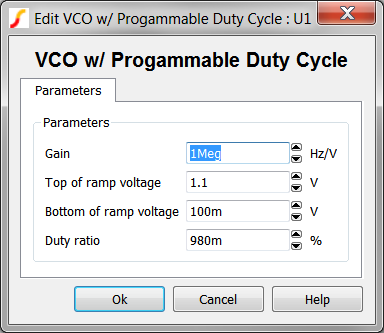 The test circuit used to generate the waveform examples in the next section can be downloaded here: simplis_070_vco_programmable_duty.